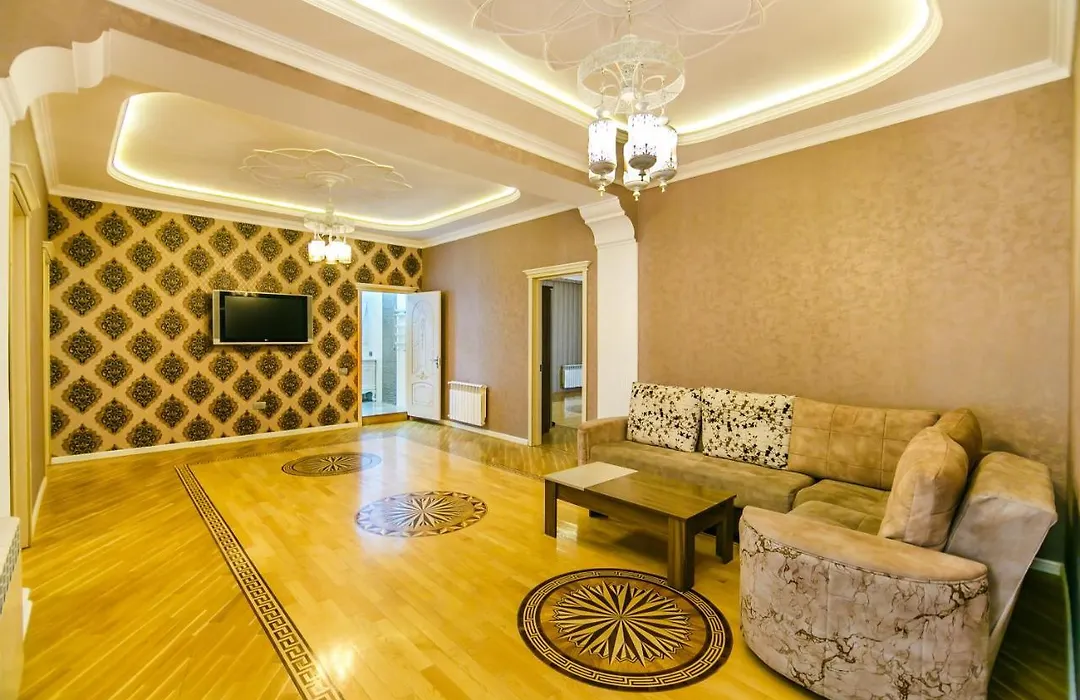 Nizami Street Nearby Mcdonald'S Shikka Apartment offers a balcony and a dressing area furnished with a sofa and a writing table, as well as comforts like an iron with ironing board and air conditioning. Guests can make the most of their downtime at the property with the availability of media facilities, such as high-speed internet and a flat-screen TV with satellite channels, ensuring a pleasant leisure experience. Beds fitted with feather pillows are at guests' disposal. A bathroom features a spa bathtub, a separate toilet, and a shower, while shower caps and bath sheets are also provided.